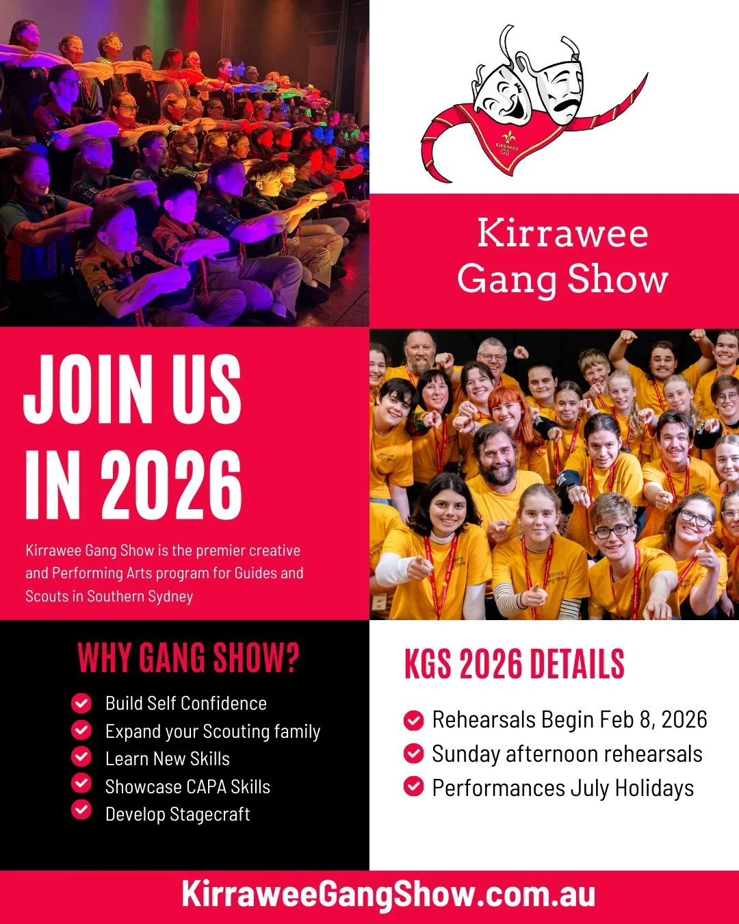 As the oldest Gang Show in NSW and the third oldest in Australia, the Kirrawee Gang Show has provided the opportunity to literally thousands of Scouts and Guides from the South Metropolitan Region and beyond to explore their theatrical talents.